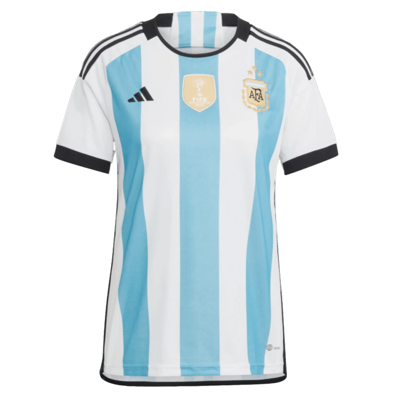 Dress like a champion! Throughout football history. those three blue stripes have stood for mesmerising footwork and unrivalled commitment. For Argentina’s latest home jersey. adidas returned to that winning look. Made for fans. it keeps things comfortable with smooth fabric and moisture-wicking AEROREADY. That champions badge and extra star over the crest confirm a memorable victory. A minimum of 70% of this product is a blend of recycled and renewable materials.