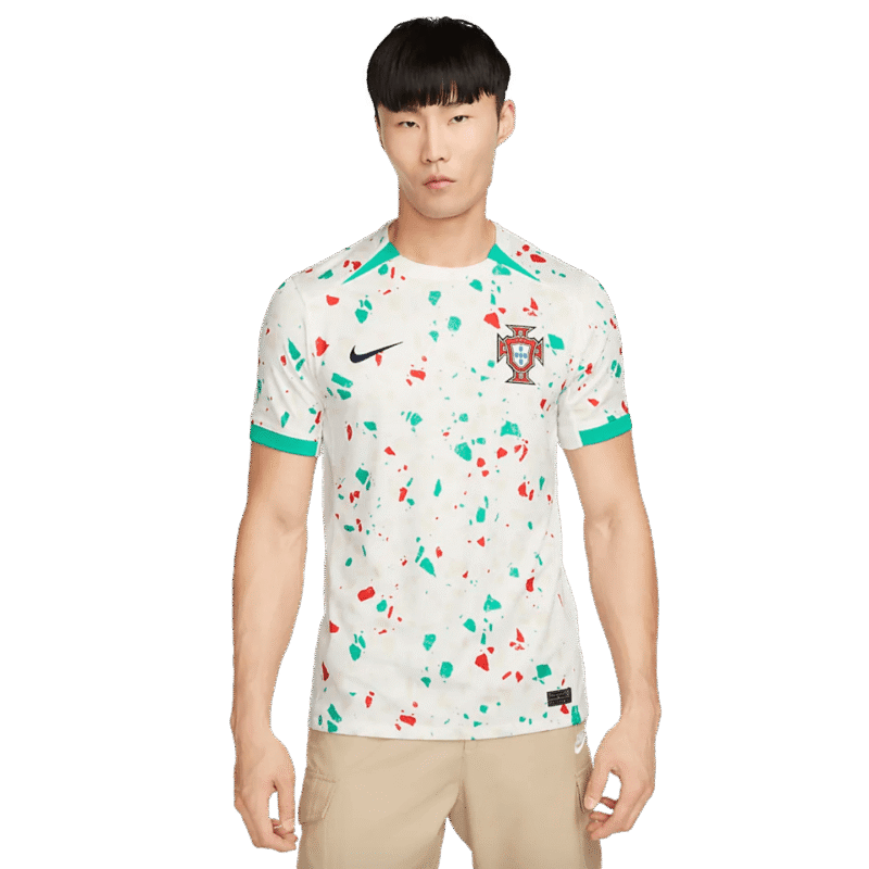 When designing the Portugal 2023 Away jersey. we wanted to celebrate soccer as an art form. After all. there’s a reason it’s called the beautiful game. An allover print pulls inspiration from street art and the national flag to turn this jersey into a work of art. Like other jerseys in our Stadium collection. this one pairs replica design details with sweat-wicking technology to give you a game-ready look inspired by your favorite team.
